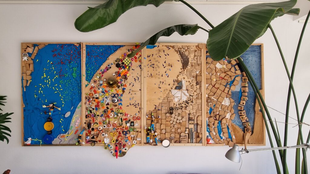 The horn of plenty .Vierluik 100 x 230 cm Diverse materialen